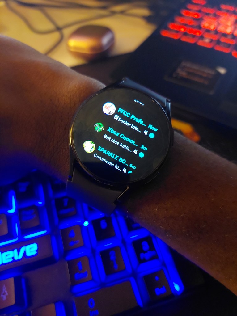 No, I do not mean the third-party apps like WhatsApp or telegram (spoiler its next but keep reading). I am talking about the defaults like android messages. The galaxy watch does come with preloaded texting app, but I opted for the android alternative because I already use it on the phone as my default (we can have a separate blog just about duplicates on Samsung phones I tell you). The ability to reply text from your watch is absolutely awesome and makes you more productive as you won’t find your self doomscrolling your phone after replying to a text. Before you screen “Fred that keyboard is tiny and not comfortable”. It is sure but you have option of voice and swipe gestures so relax it is a comfortable experience. Not only that, but you can scroll back on a chat and check all the previous conversations. This is something many fitness trackers cannot do aside from just checking the notification (some like galaxy fit3 and mi band 8 have preset quick replies) still doesn’t match up to the full capabilities of texting the watches give you.